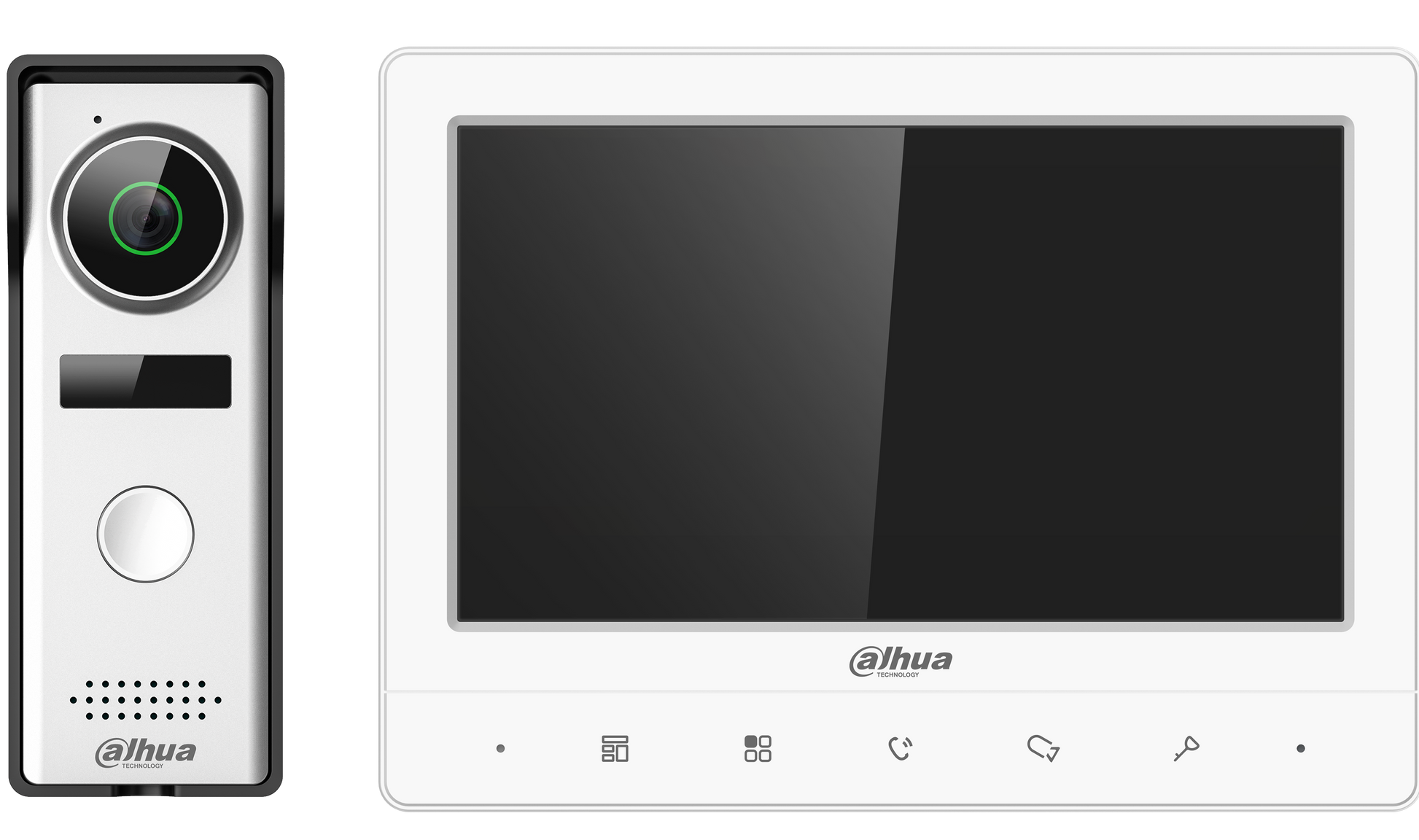 ΚΙΤ θυροτηλεόρασης 4 καλωδίων. Το KIT περιλαμβάνει 1 κεντρική μονάδα VTO1000J και 1 οθόνη VTH1020J.