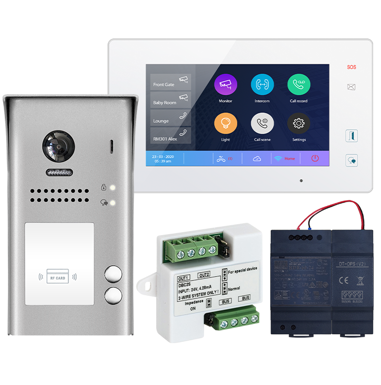 - 2 x DX47/TD7-W: Monitor θυροτηλεόρασης 2 καλωδίων WiFi 7", σε λευκό χρώμα